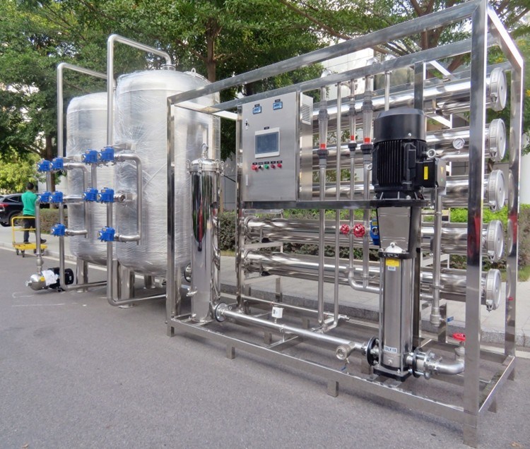Industrielle Umkehrosmoseanlagen umfassen einen Multimedia-Vorfilter, ein Wasserenthärter- oder Anti-Scalant-Dosiersystem, ein Deklor-Dosiersystem, eine Umkehrosmoseeinheit mit halbdurchlässigen Membranen,und UV-Sterilisatoren oder nach der Behandlung mit ChlorDiese RO-Maschinen wenden die Technologie der Umkehrosmose an, indem sie das Futterwasser durch einen Multimedia-Vorfilter transportieren, um Partikel mit einer Größe von mehr als 10 Mikrometern zu entfernen.Dann wird das Wasser mit einer Anti-Scalant Chemikalie injiziert, um Härte Verunreinigung zu kontrollieren, die Schäden an den Membranen der RO Maschine verursachen kannDiese Vorbehandlungsoptionen können Härte, Chlor, Geruch, Farbe, Eisen und Schwefel entfernen.Das Wasser fließt dann in die Umkehrosmoseeinheit, wo eine Hochdruckpumpe einen extremen Druck auf die hochkonzentrierte Lösung ausübtFrisches, trinkbares Wasser kommt aus dem Niederdruckende der Membran heraus, während Salze, Mineralien,und andere Verunreinigungen in einen Abfluss am anderen Ende entlassenSchließlich wird das Wasser durch einen UV-Sterilisator (oder nach der Chlorisierung) geleitet, um alle noch vorhandenen Bakterien und Mikroben zu töten.